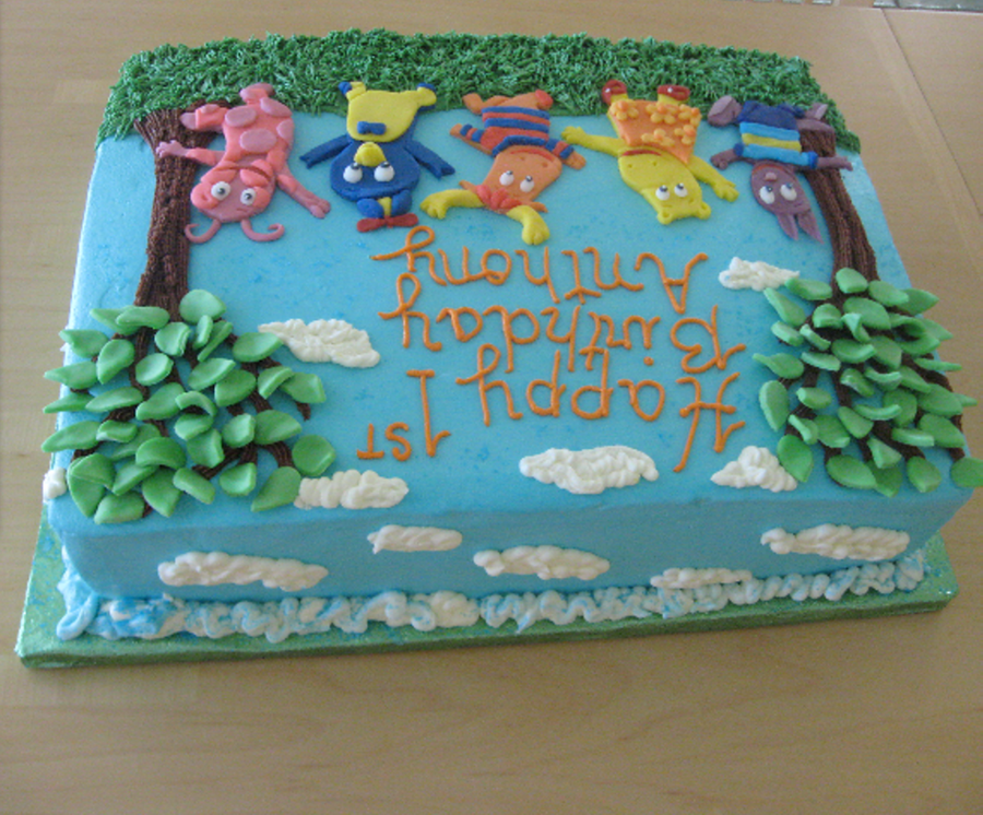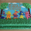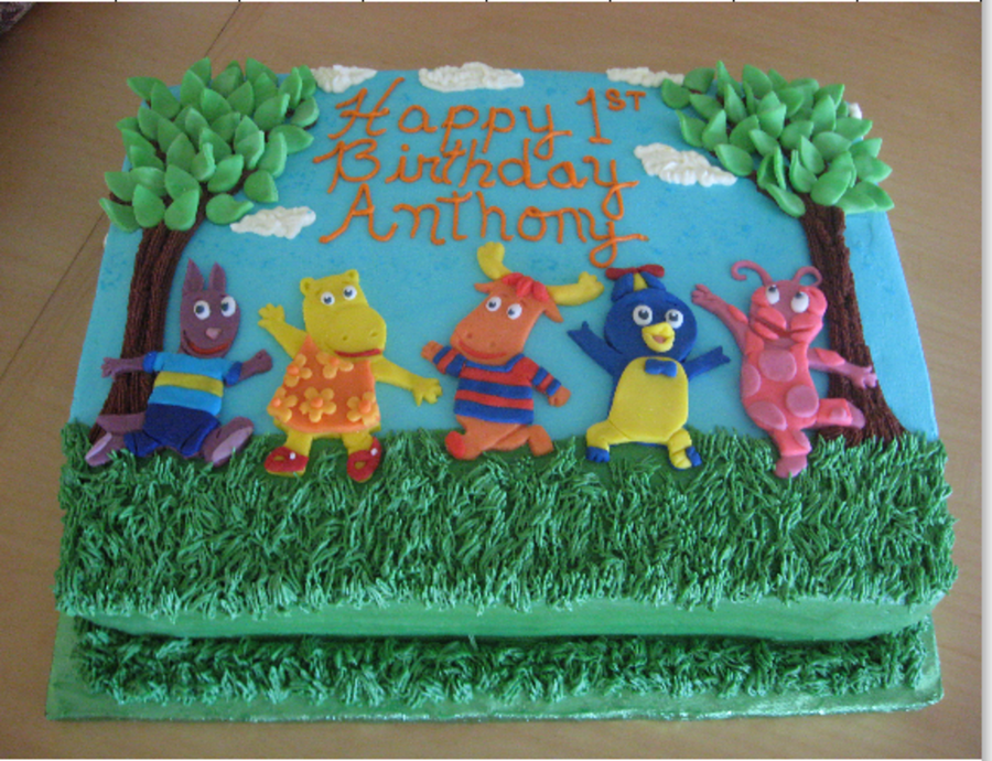 I took the idea from a cake that I saw here on CC and sorry I forgot from who but thanks for inspiration. Buttercream icing with fondant cut outs , it was a lot of work making them but fun!