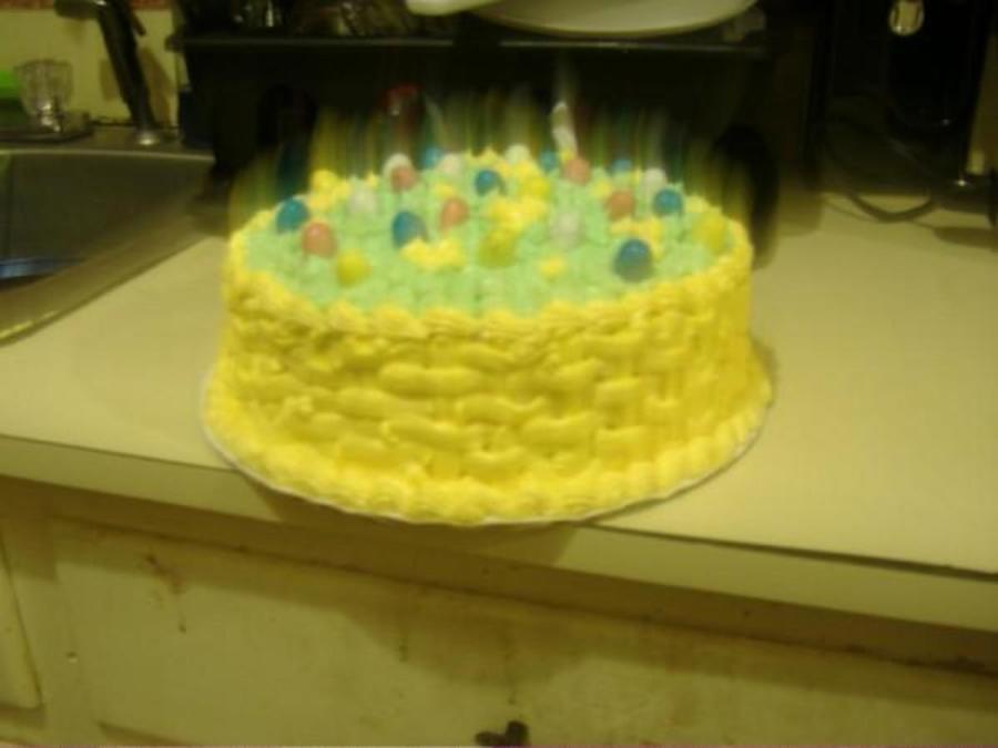 This was the very first cake I ever decorated. Sorry for the quality of the pictures, they are the only ones I have. The cake was melting and doesn't look the greatest but it definitely tasted good. I don't think I did too bad for my first cake.