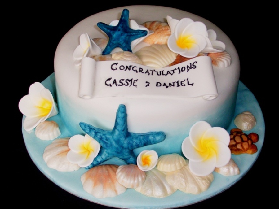 For a young couple at work, they are going to Hawaii next year to get married. Design taken from a cake by "Cake That".