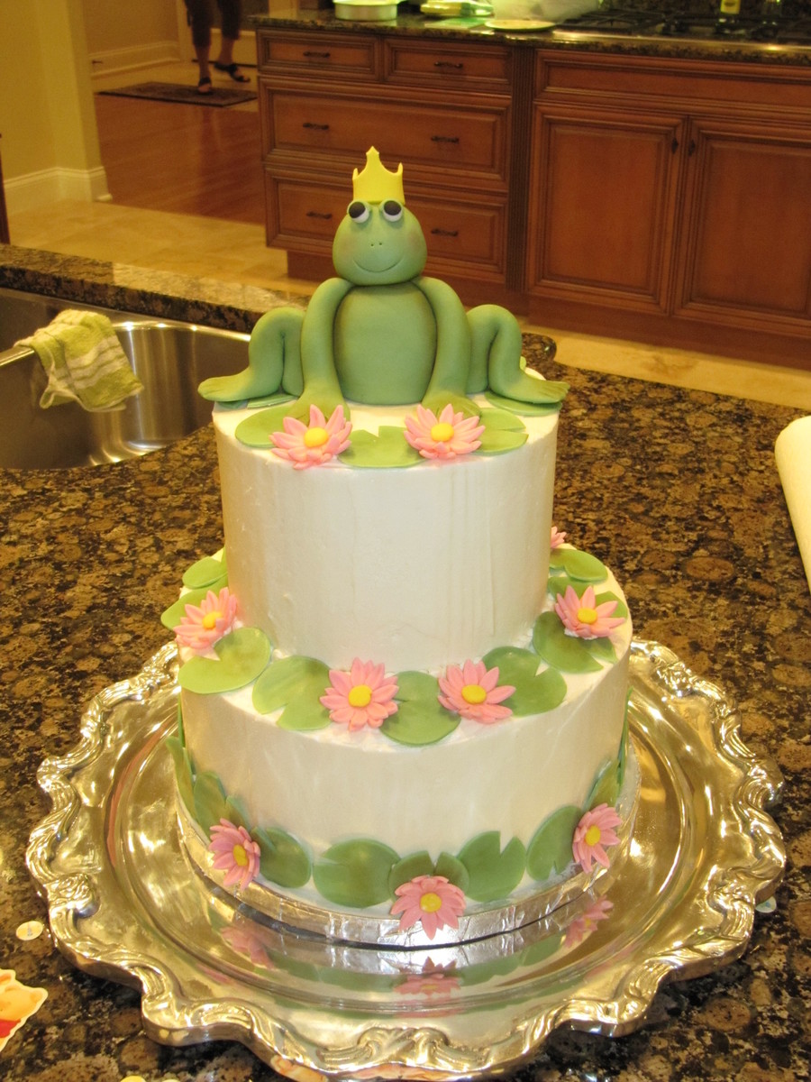 Buttercream cake to celebrate the birth of a sweet little prince! All decorations are fondant. The frog was lots of fun to make!