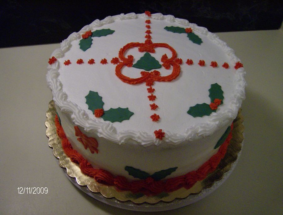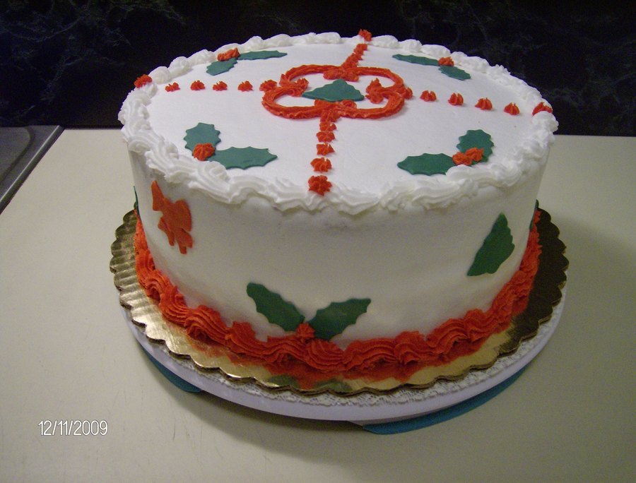 White cake with peppermint flavor, bavarian cream filling, peppermint flavor buttercream icing.