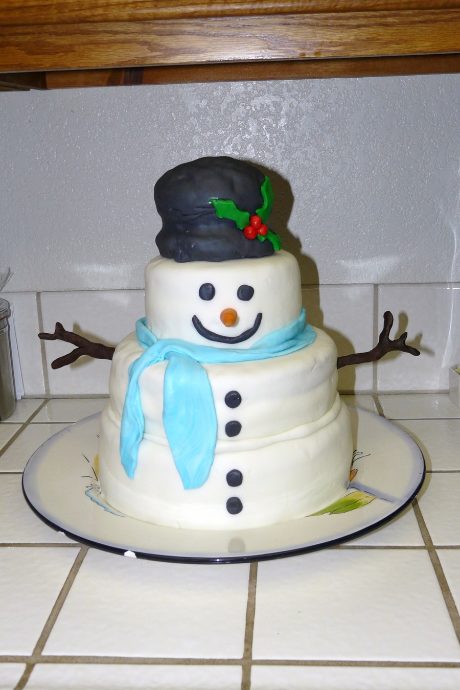 This is the first time I tried to make a 3-tier fondant covered cake. I got the idea for this cake from some of the cakes I saw on CC. It is covered in MMF. The hat is rice krispie covered in MMF.