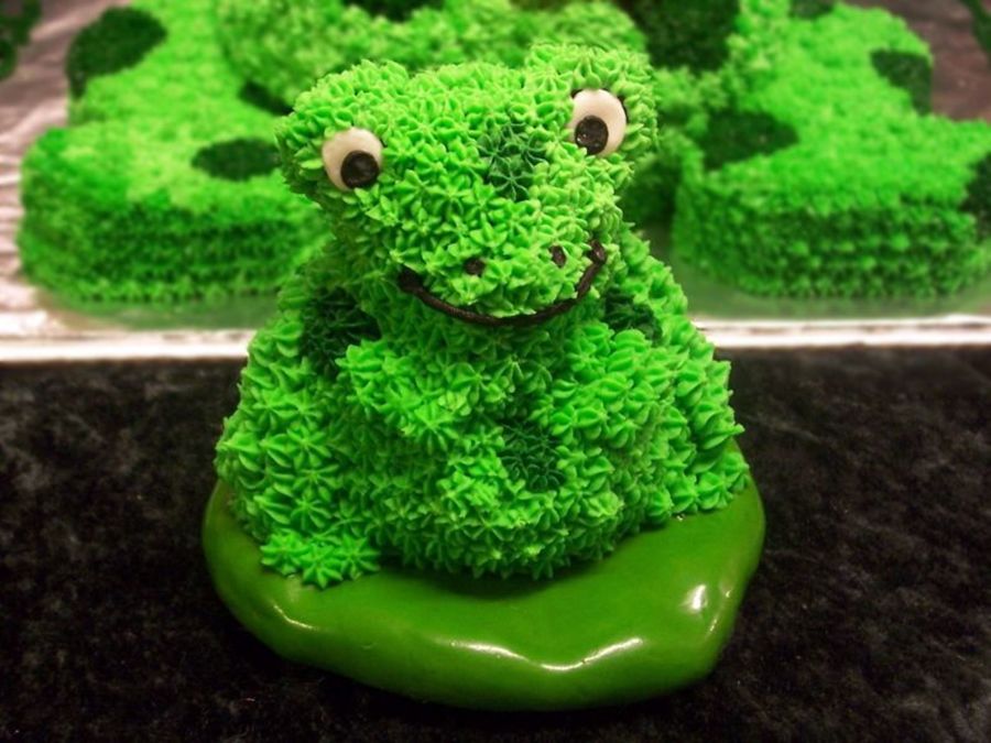 This is the smash cake that goes along with the Froggie cake, I put him on a little fondant lilly pad. He is made out of the mini bear pan!