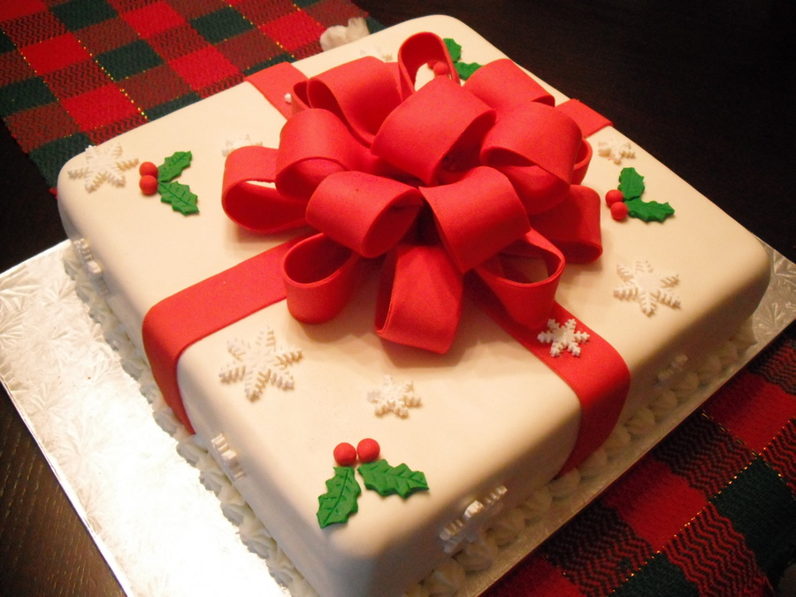 Triple chocolate with chocolate icing, fondant decorations. This was my first multi-loop bow & after having glue issues, a few loops broke off but I was able to repair them with no problem. Idea from a few different cakes on CC. Thanks for the insipiration!