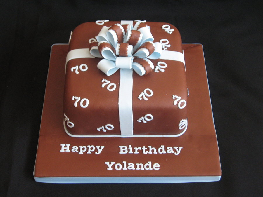 Its a present cake, similar to another cake that I did. But this time I changed the bow. Its a Chocolate cake, filled with ganache and cover in ganache and then in chocolate paste. TFL.