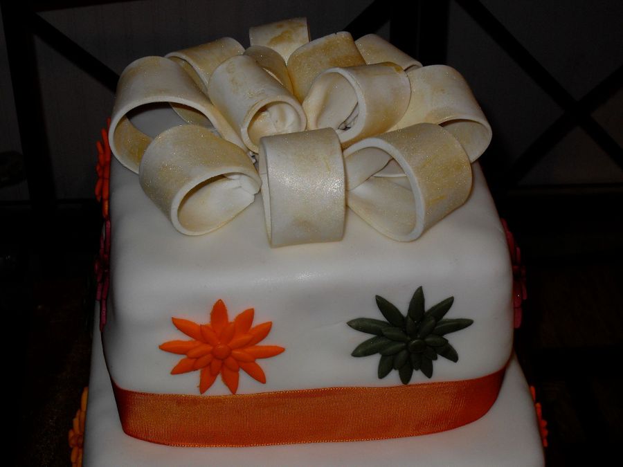 Everything was made out of fondant and instead of making the bow gold i applied shimmer gold, thanks for looking everyone!