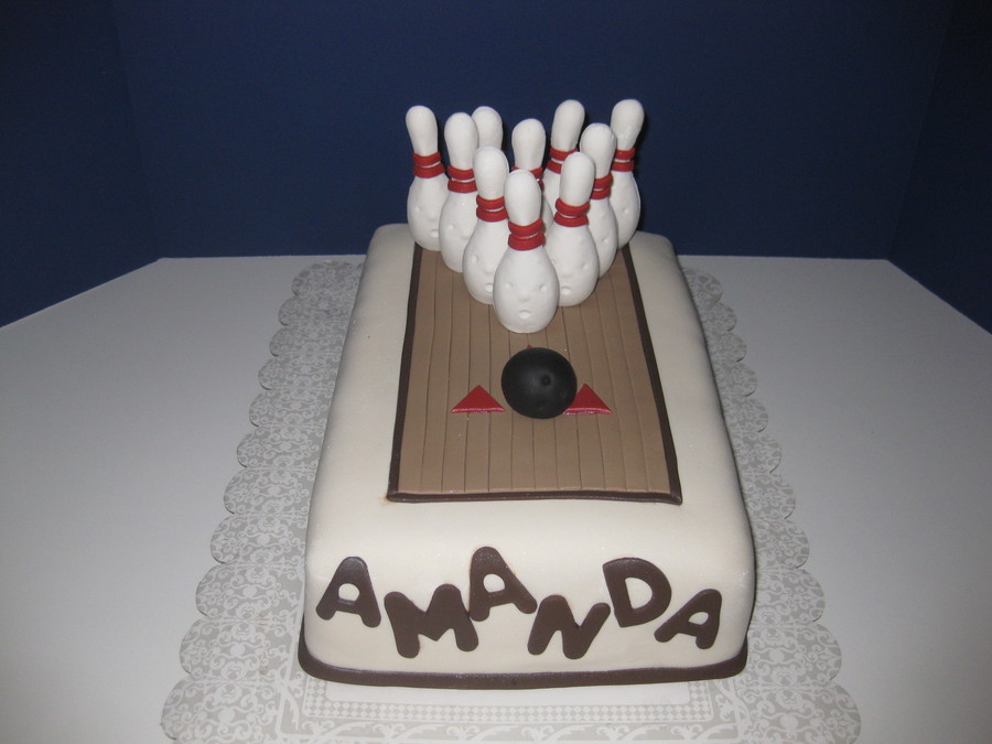 All fondant, bowling pins were made from a candy mold with gumpaste