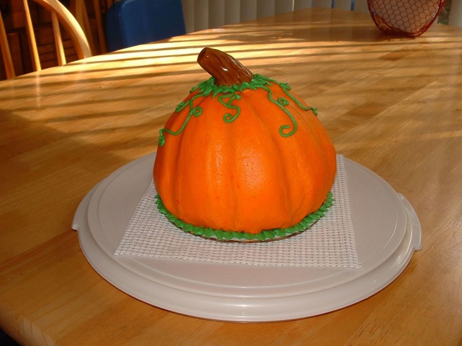 Pumpkin cake iced with vanilla butter cream. Stem is made of MMF.