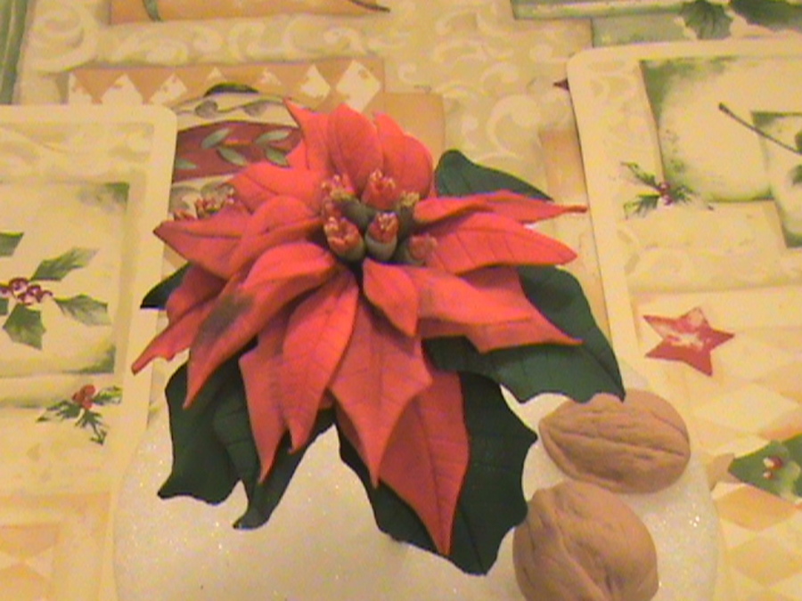 My first pointsetta, made out of gum paste.Thanks for your help Loucinda