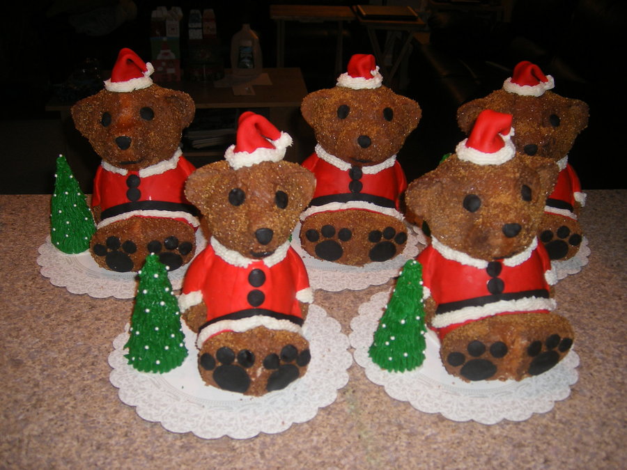 Bears are all fondant Santa costume with BC trim. Trees are all ice cream cones with BC.