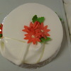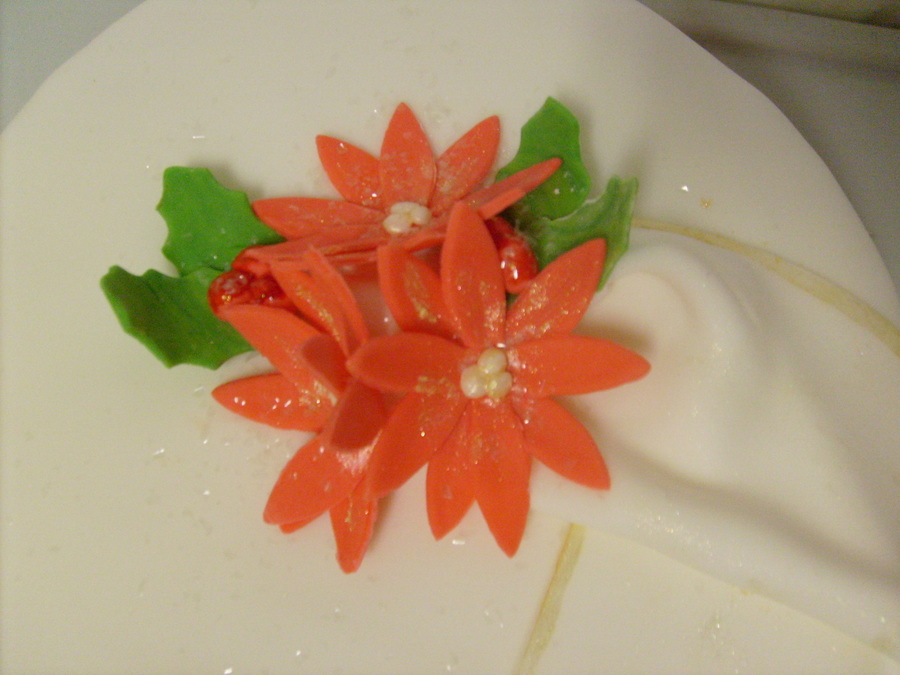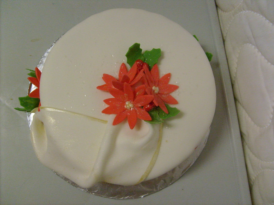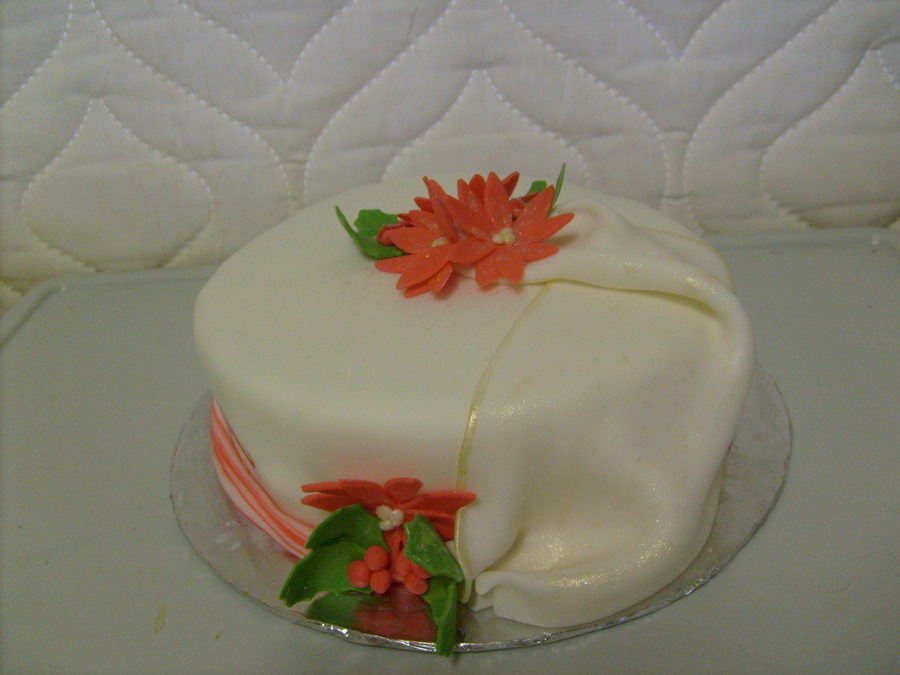 This is a chocolate cake frosted with buttercream, and covered with fondant. The flowers and drape are also fondant. I also added some sugar flakes and luster dust to add some sparkle. :) TFL!!!