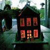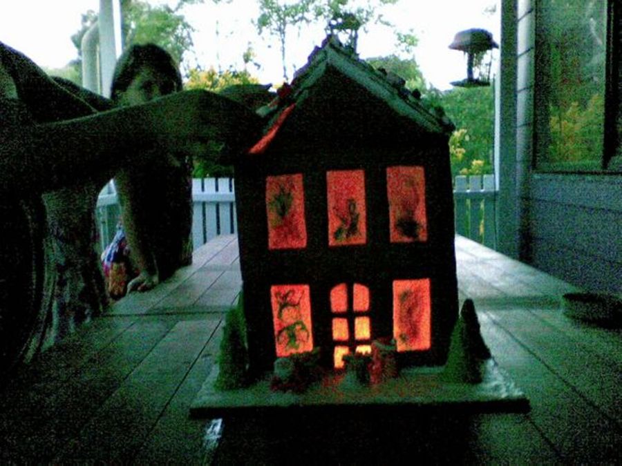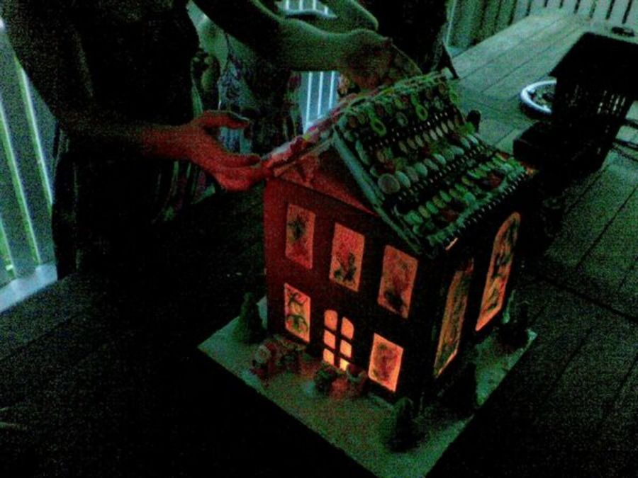 Apologies for the bad photo quality, I had to take it on my phone camera and it was getting dark. The "stained glass" windows are made from toffee.