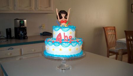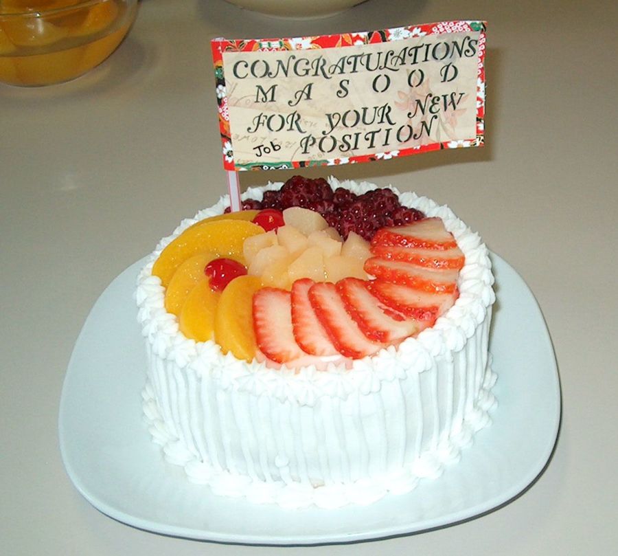 6" round cake with lots of fruit, three layer white cake with whipped cream and strawerries filling.