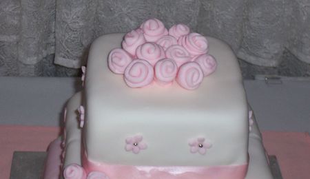 I made this cake for my parents' 40th anniversary. They didn't have a wedding cake, so I wanted to make it special. It of course, didn't turn out the way I had pictured it in my head, but they were pleased.... TFL! All comments welcome! ....... Jen