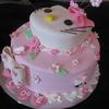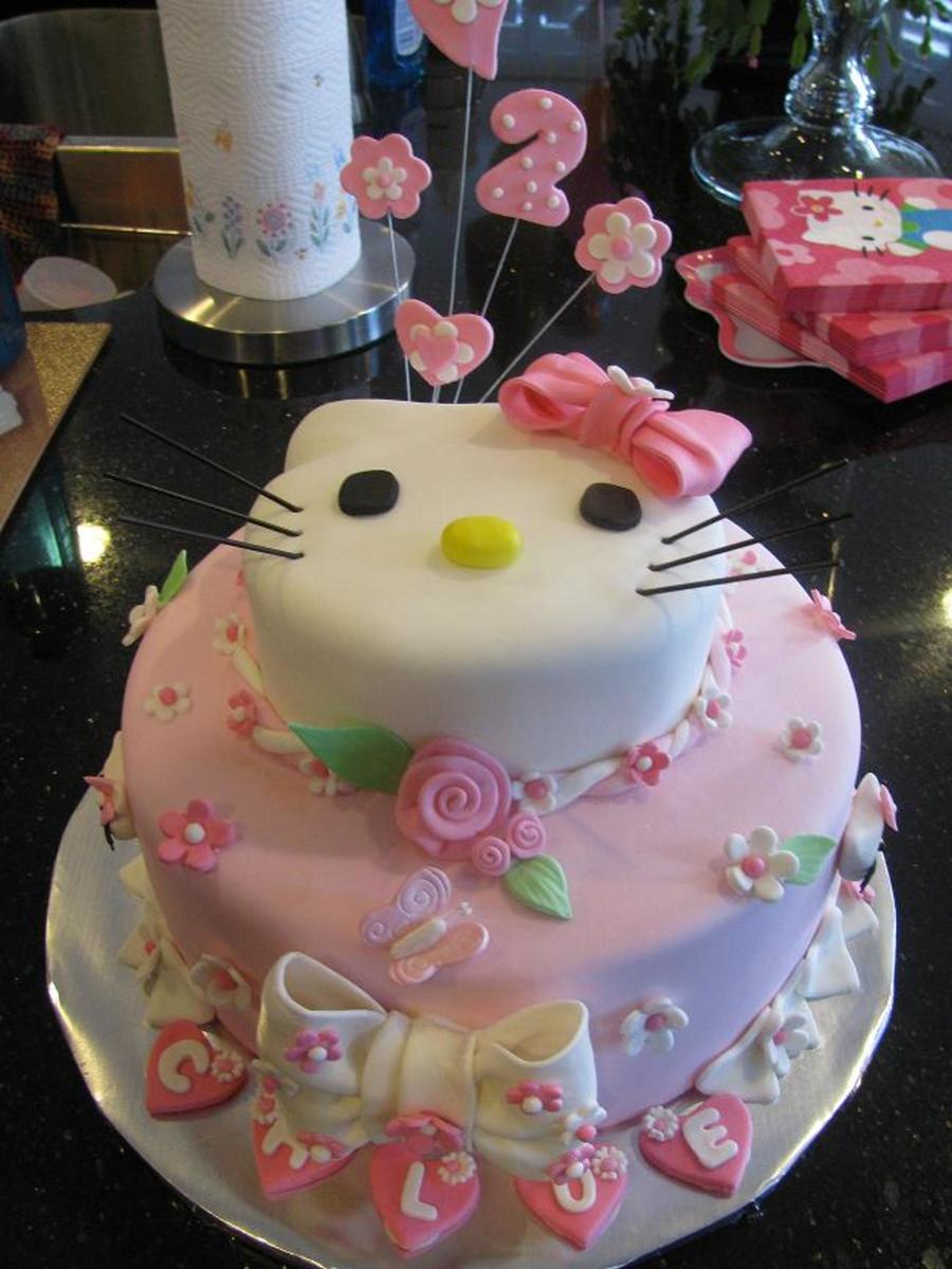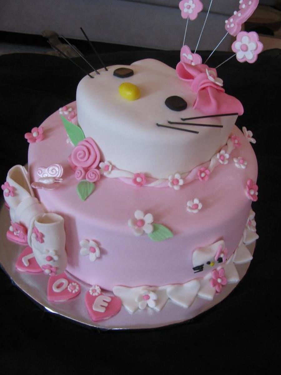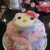 Hello Kitty... 10 inch bottom cake and I carved an 8 inch cake for hello kitty head....I pained spaghetti black for the whiskers. All fondant/gumpaste flowers and bow. Happy New Year to all. TFL