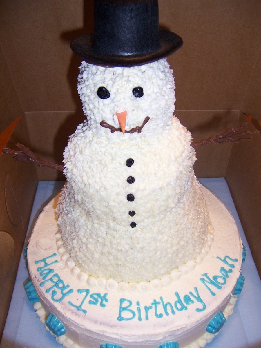 This was for a child's first birthday. Chocolate cake with bc icing. The blue writing and snowflakes are melted candy wafers. TFL.