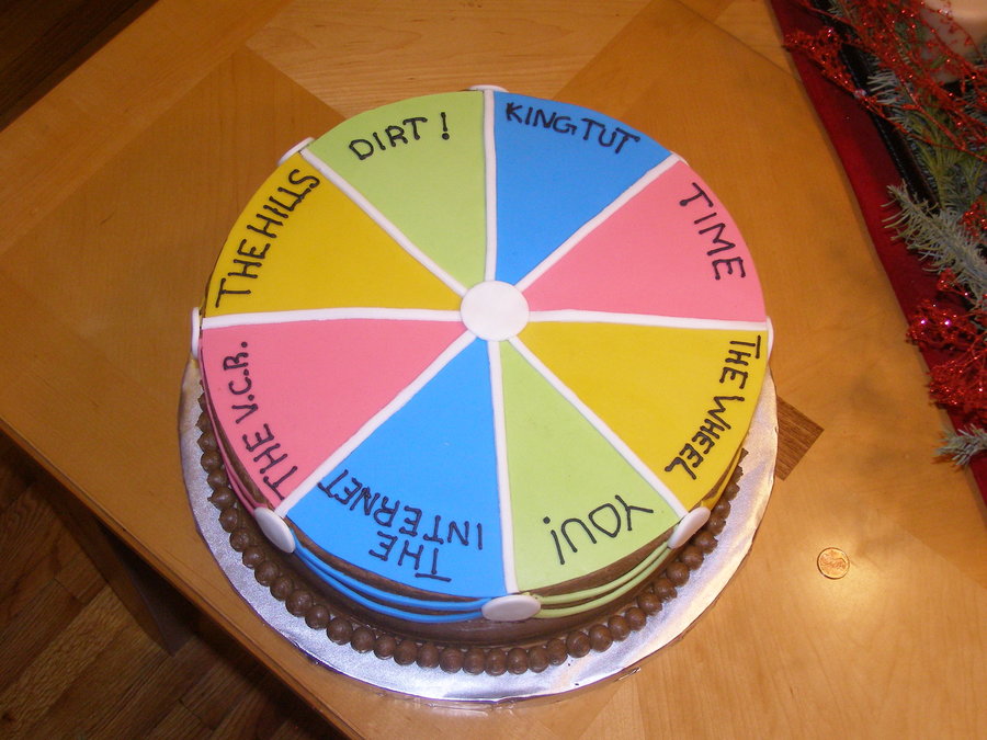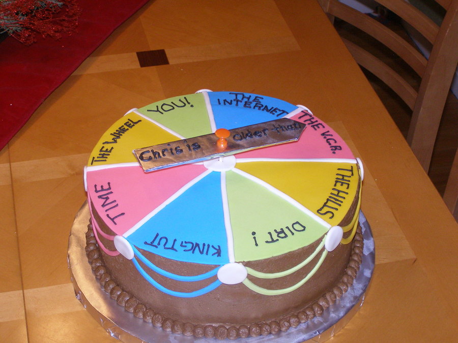 This cake was for a friends 40th birthday. The idea was taken off of Wiltons webiste. The cake was covered in choclate buttercream with fonant accents