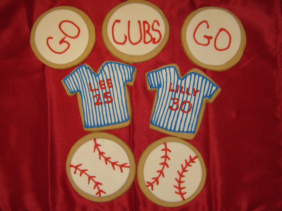 Chicago Cubs Jersey and ball cookies, NFSC with MMF and royal icing.