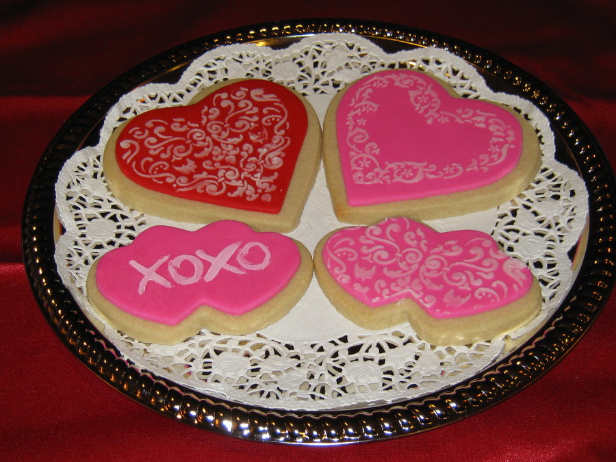 NFSC with MMF and royal icing using stencils. The "XOXO" was handpainted on with food coloring.