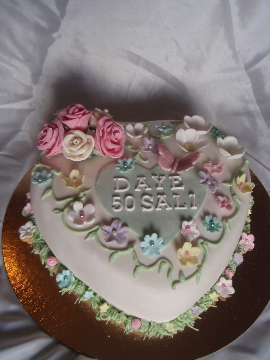 Flowercake to my kurdish friends mother. The ckae is coverd with marzipan, the flowers are made with gumpaste