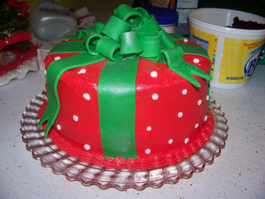 This cake is a 8" round, red velvet cake, cream cheese filling and frosting. Bow is fondant.