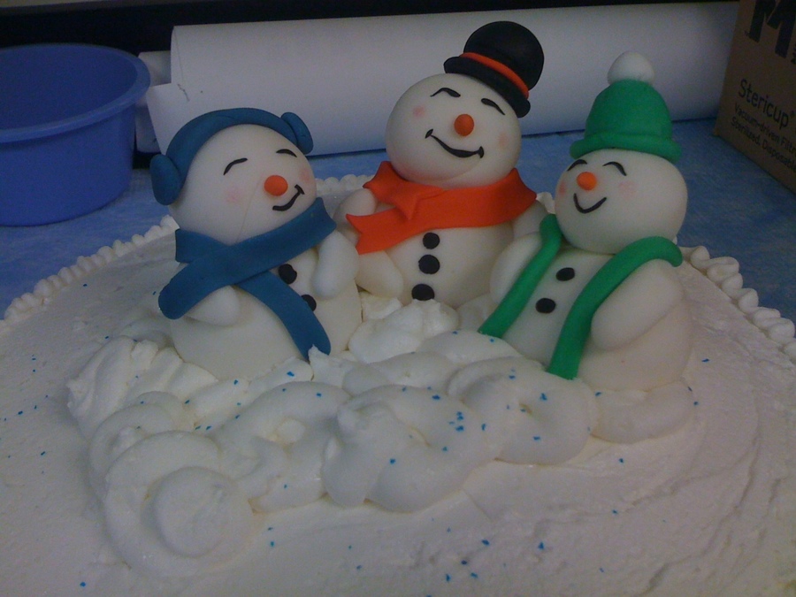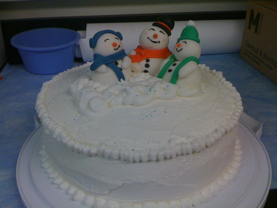 Cake for 'holiday' party at work. BC Icing; Fondant/Gumpaste figures Inspiration from other members