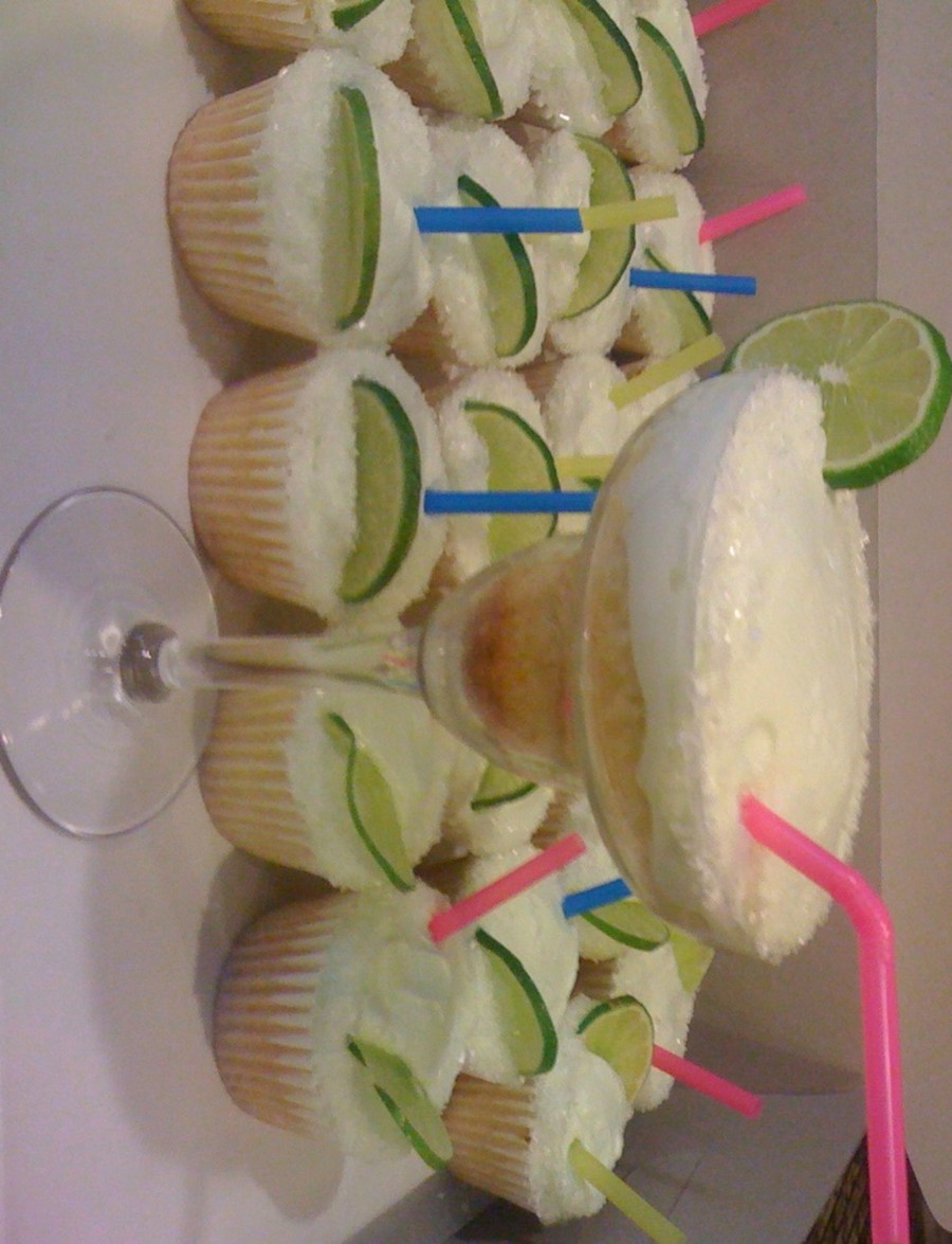 I have made maragrita cupcakes before, but this was for my friend's 21 birthdayso I wanted them to be special. I baked a little batter in a sport ball pan, then cut a cupcake to fit in the bottom of the margarita glass, put my "ball" cake on top,frosted it, and "salted" the glass with sugar crystals. She loved it!
