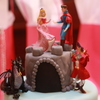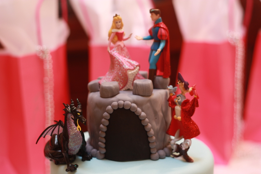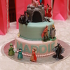 2 tier, 10" and 8" with a 4" castle (so I guess it was 3 tier)! The client supplied the figurines and put them on the cake. It was my first use of my new airbrush to put a shimmer on the pink and blue tiers.