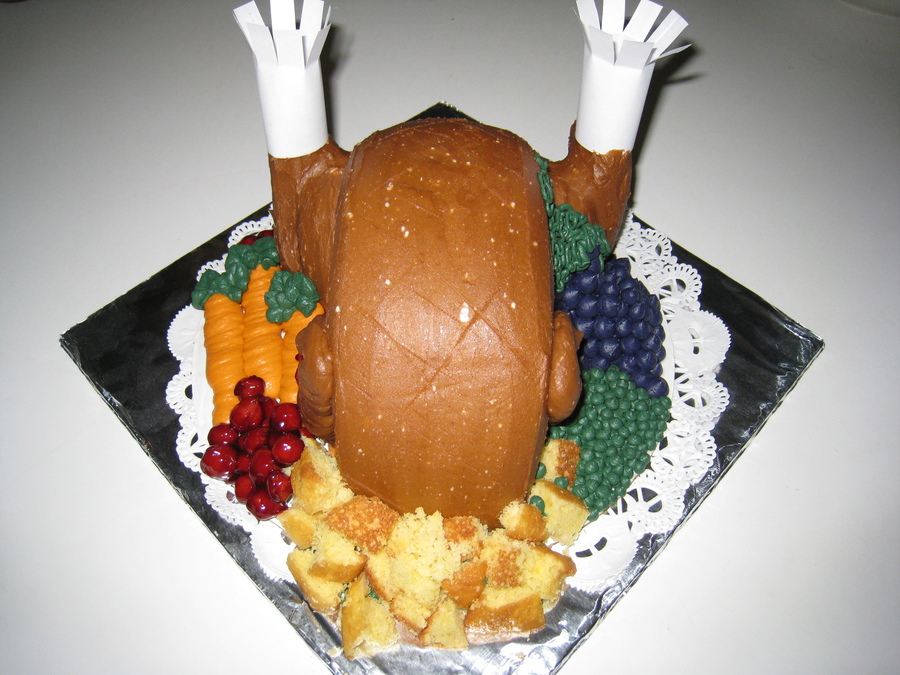 The Turkey was stuffed with Chocolate buttercream and sides were made of fondant.