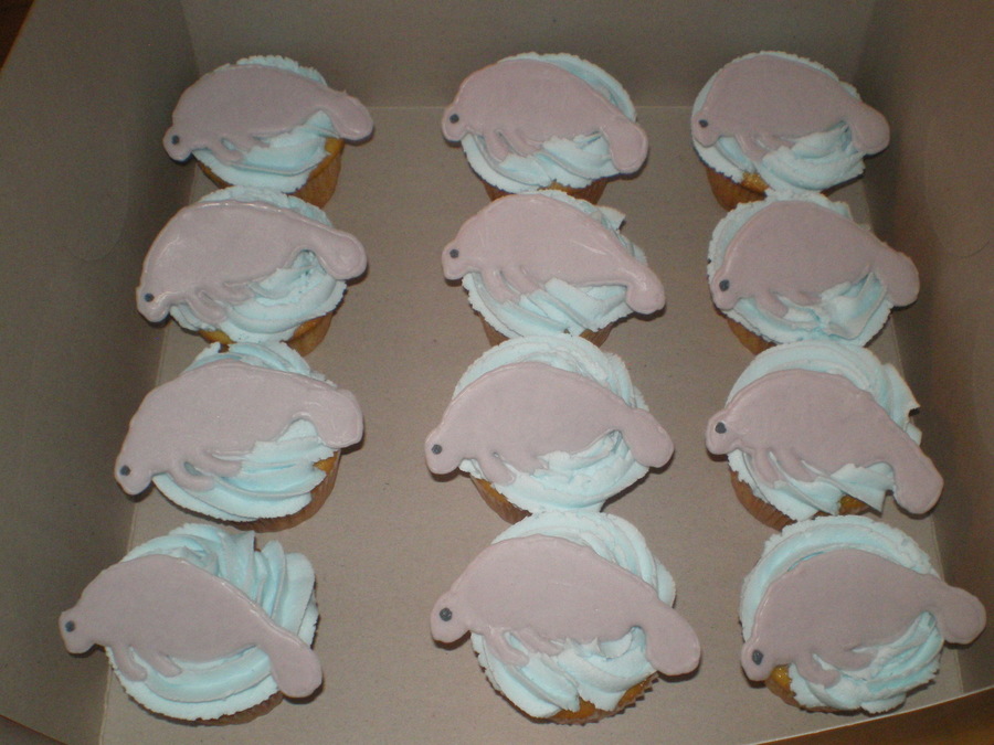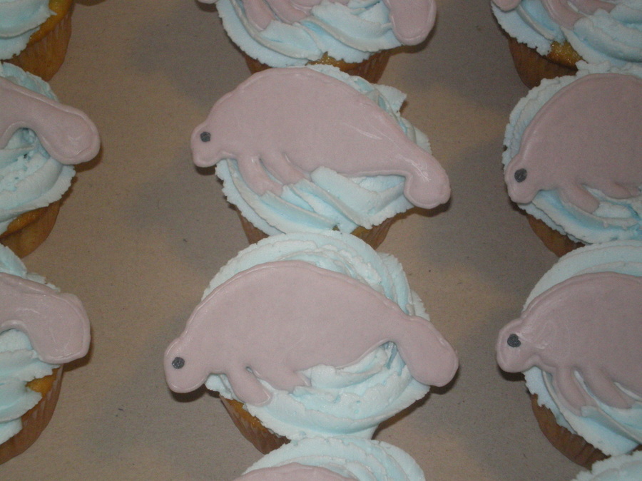 Hand poured chocolate manatees, buttercream icing