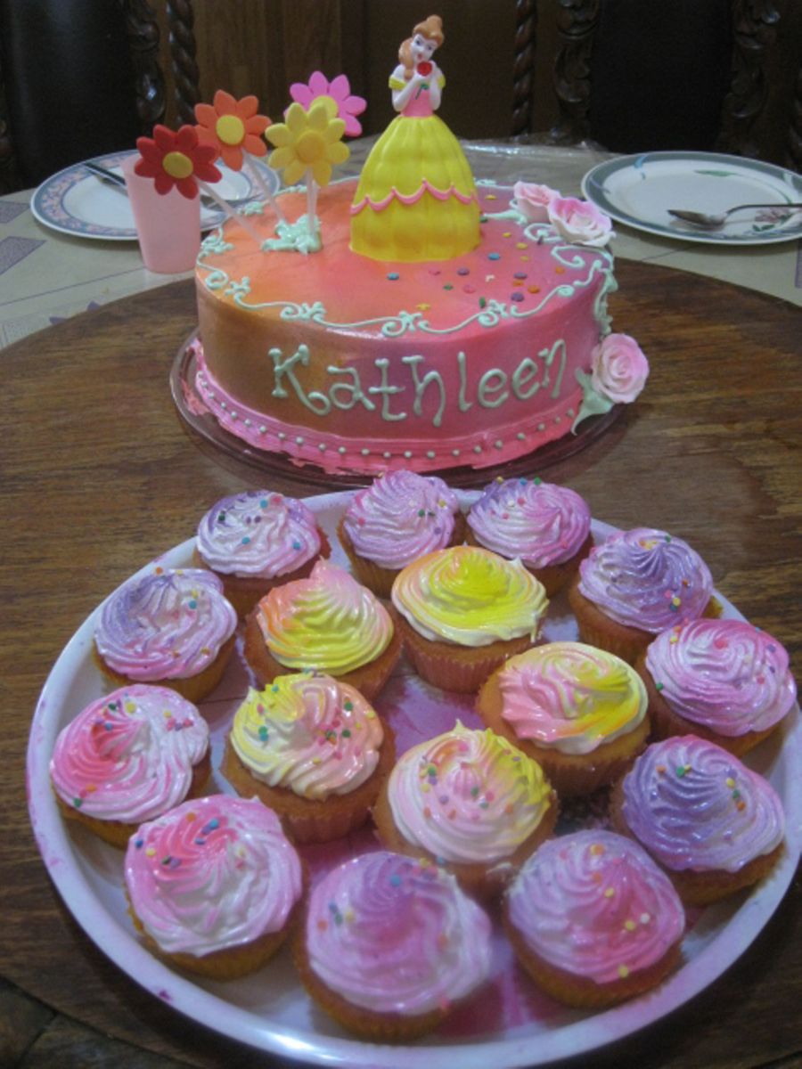 this is the cake i did for my daughter who turned 7. air brushed colors and hurriedly done cause there were still cupcakes.