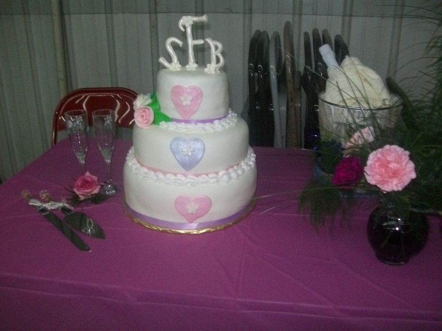 My first fondant covered wedding cake done for my co workers wedding.