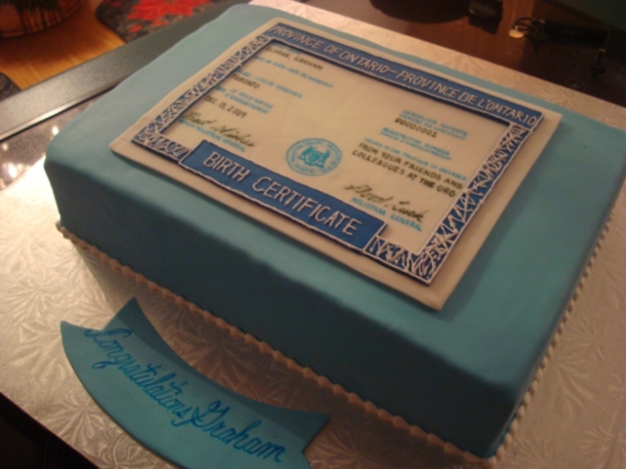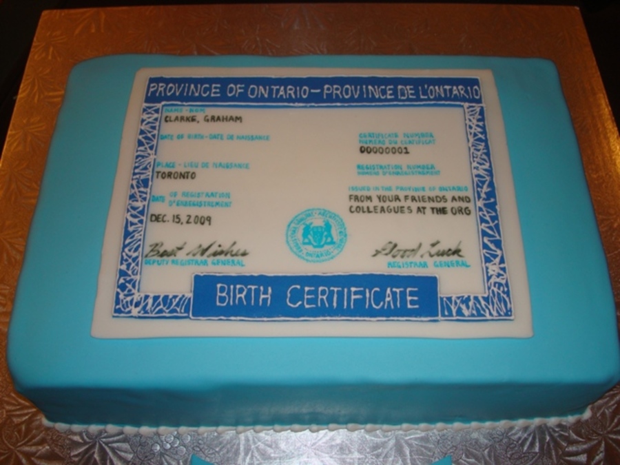 This was for a client who was retiring. He worked in the government offices that issued birth certificates. This is an Ontario birth certificate, although there are many versions of a real one over the years.