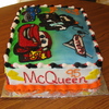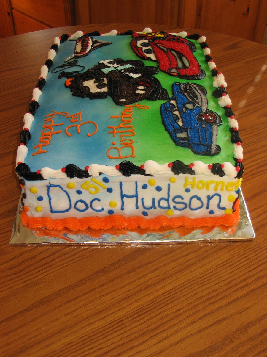 This cake ended up being about 5.5 inches. It was all buttercream and hand drawn pictures.
