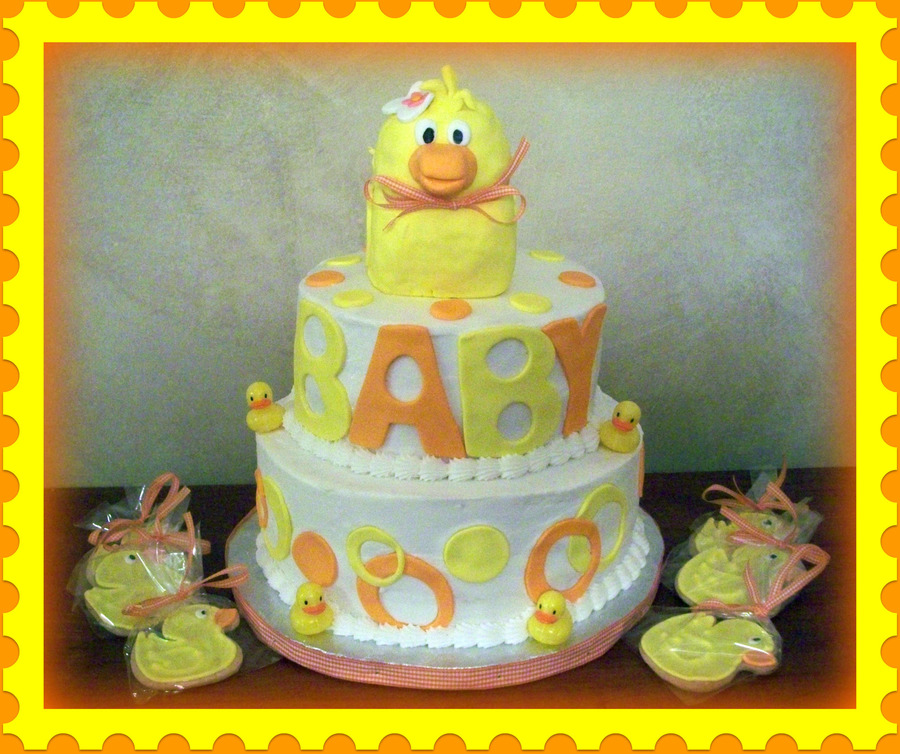 BC with fondant accents. Duck is a block of styrofoam I carved and then covered in fondant. Little ducks are plastic. Matching Duck Sugar Cookies.