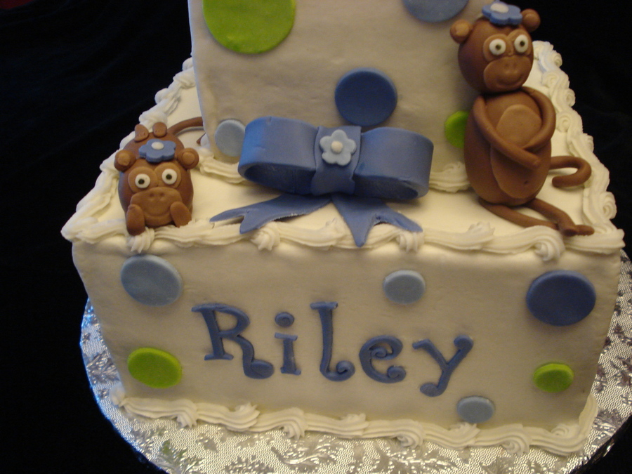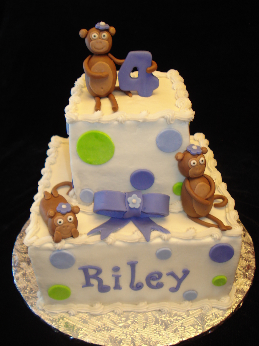 Thanks to cookinqueen for the design on this one. My first time making fondant figures. I wasn't happy with the bow (only 2nd one of those and the last one was 5 years ago!), but overall I thought this cake turned out so cute. I really love the funky letter cutters from GSA!