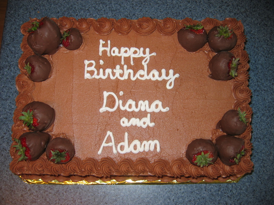 9x13 in french vanilla cake, choc bc frosting, choc strawberries on top