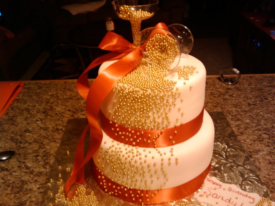 MMF, gold dragees, satin ribbon. Thanks soooo much to cownsj for posting her cake, it was great inspiration for this one!