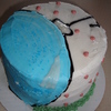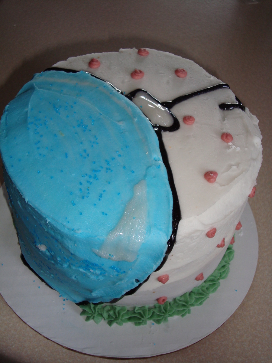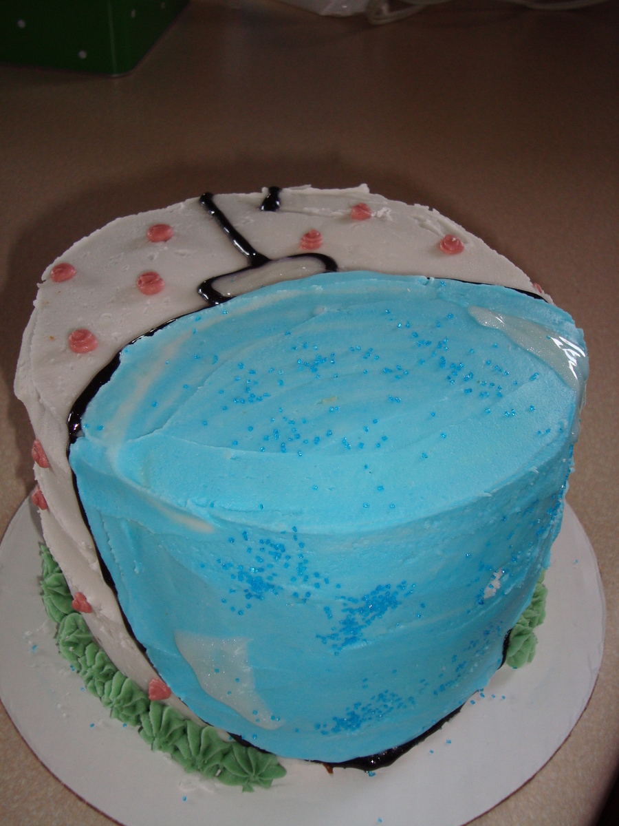 This is a neighbor christmas cake with a giant blue orniment on it. It makes me happy