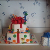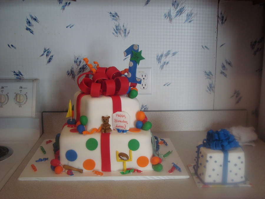 This was for a boys 1st Birthday .10 in. & 6 in. vanilla & buttercream, w/ 4 in. smash cake. This was my first time making a square cake and a first time for stacking a cake. Could not find (in time crunch) a 6 in. pan or 4 in. so I had to cut out of 8 in. Was not fun! I am happy with how it turned out. Any constructive criticism is welcome. TFL