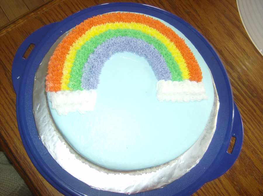 Rainbow cake from first Wilton Class. French Vanilla Cake, with Buttercream icing.