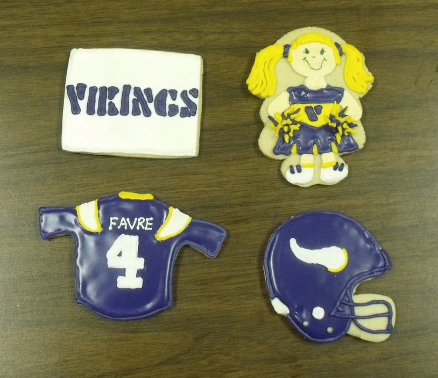 Thanks for looking! Playoff cookies for this years fire department fundraiser! The Vikings regular logo is REALLY hard so I opted for this one instead :) ! I wish Santa had brought me a Kopykake printer...:)