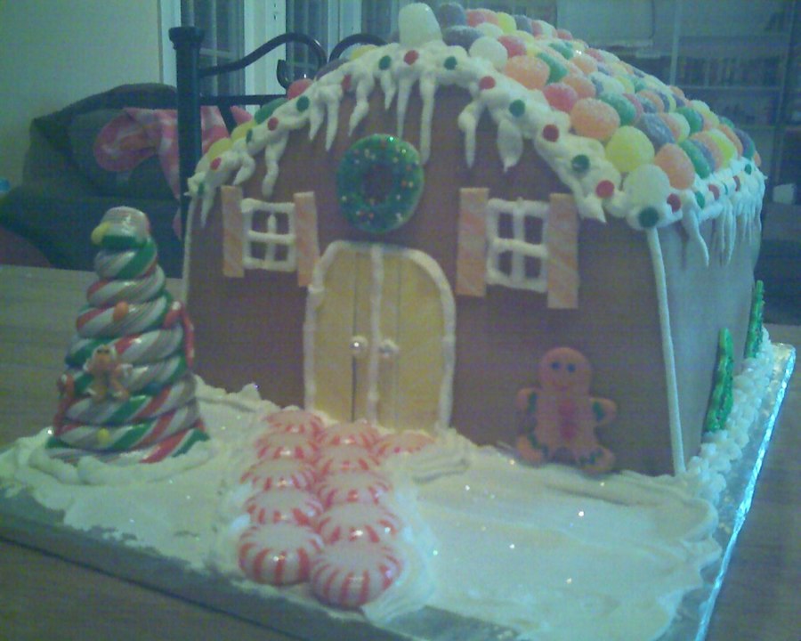 She wanted a cake to look like a gingerbread house for a Christmas party. All fondant and candy decorations