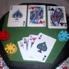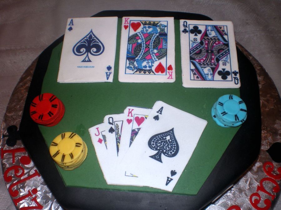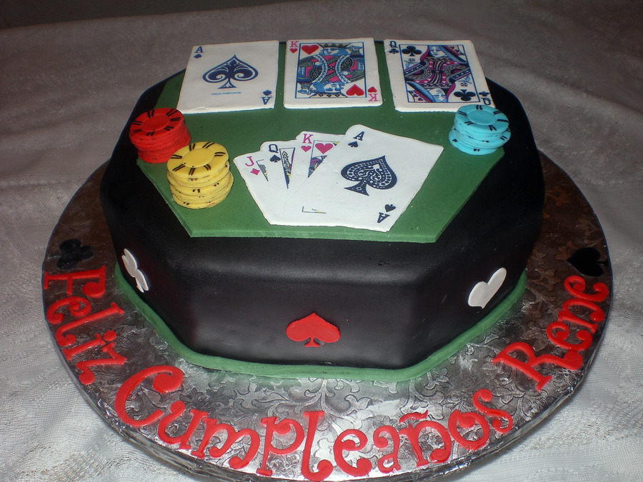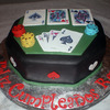 Chocolate cake with coconut/cream/pecans filling. Covered in satin ice fondant and edible image poker cards. First time carving a cake. It was fun making it.