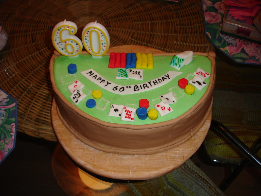 Blackjack table for my father in-law's 60th birthday. Fondant with fondant accents.