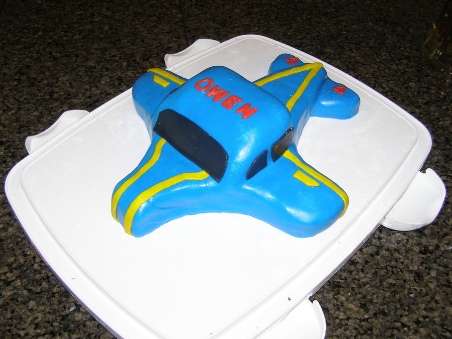My son wanted a blue airplane with a yellow stripe and this is what he got! It is funny how specific kids can be sometimes. I made the cake out of one 9X13 cake, but the cabin of the plane was made too big, next time I would trim it all back a bit.
