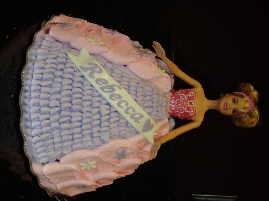 Made for a 5 year old. She wanted Barbie in pink and purple. White cake with chocolate chips.