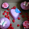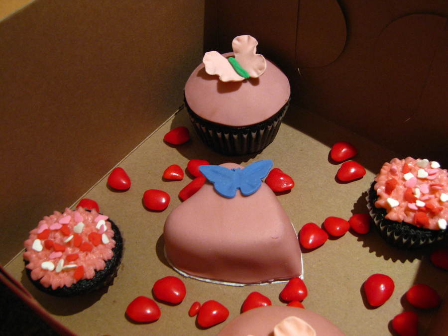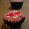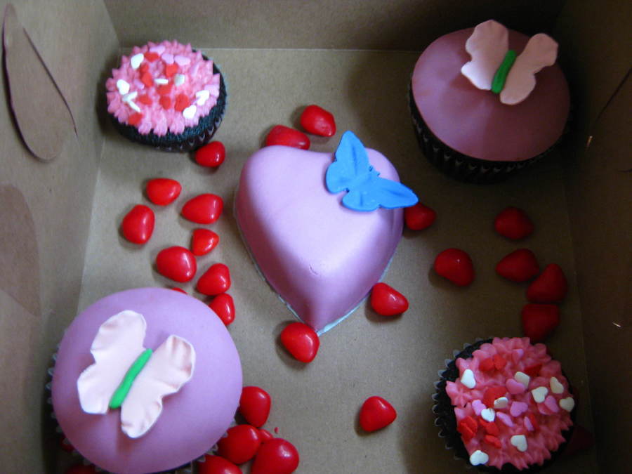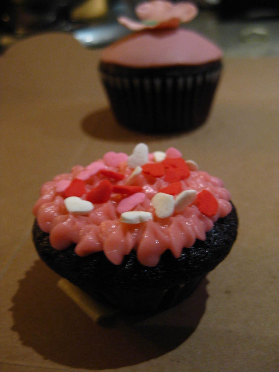Chocolate cupcakes with strawberry puree & choc ganache, and choc mini cake with vanilla buttercream.