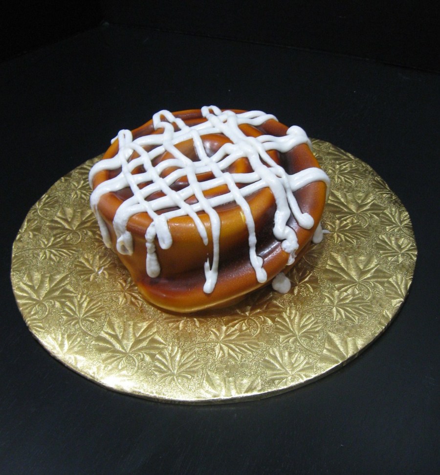 cinnamon roll, yellow cake covered in fondant and airbrushed