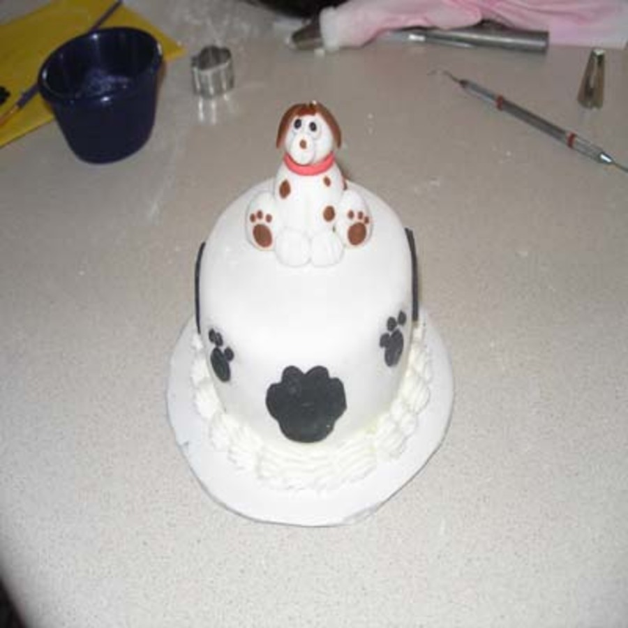 Made this for our vet, this is a gumpaste figure of our Dog Gunnar. He recently had major surgery and this was just a thank you. Mini WASC/Raspberry filling, covered in fondant and gumpaste dog and paws.